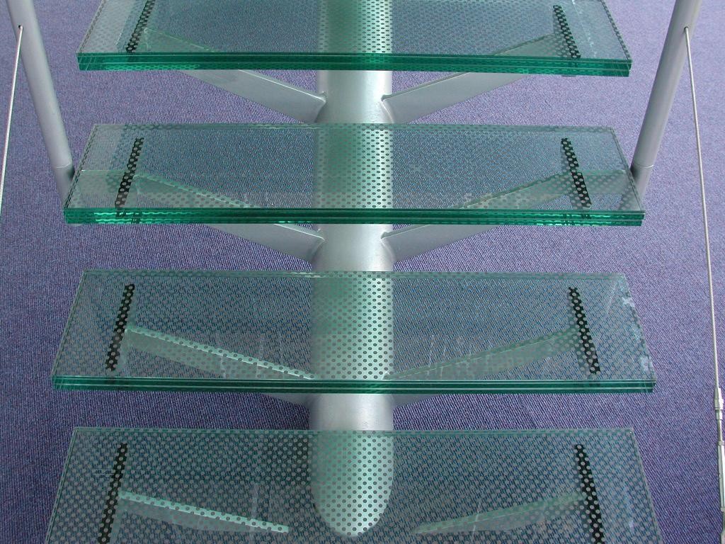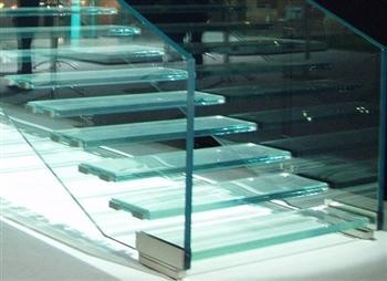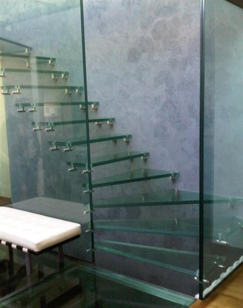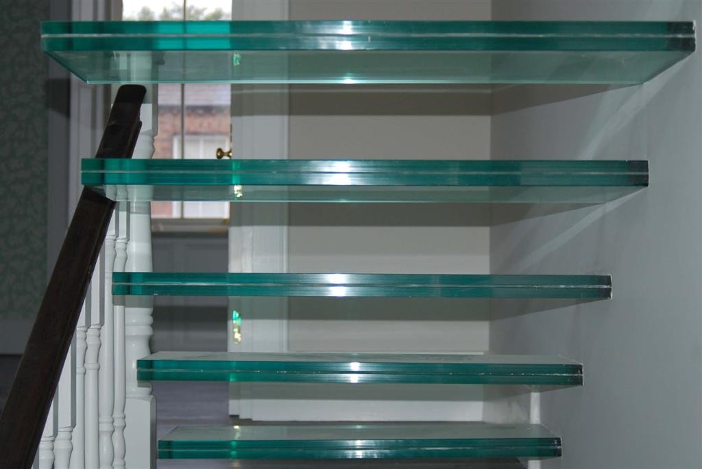 В последно време голяма популярност добиват стълбите от стъкло. Съчетават функцията на стълбище и красив интериорен елемент, като придават осветеност и обем на помещението. Изработват се от ламинирано стъкло или комбинация от ламинирано - закалено стъкла. Подходящи са за общественни сгради - офиси, заведения, магазини, хотели и други като навлизат все повече и в интериора на жилищните сгради.